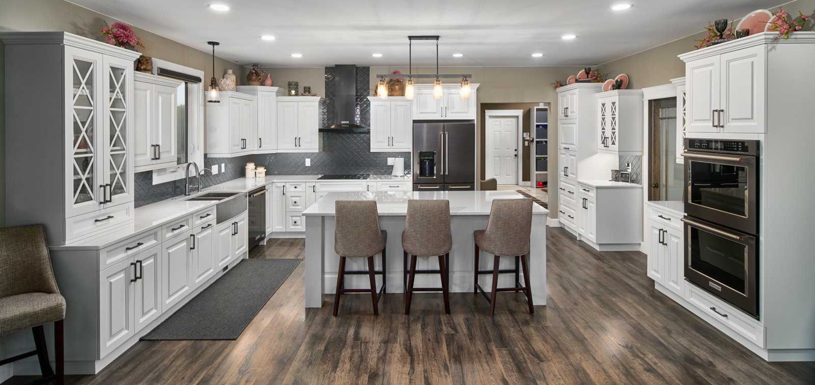 View Larger Image Bright and Classic White KitchenAdminCabinetMaster2019-11-21T21:08:35+00:00 Project Description This kitchen features classic and elegant styling with warm and inviting textures and fixtures. Project Details Skills Needed: AppliancesBacksplashBar StoolsCabinetsCountersIslandLight Fixtures Categories: Custom Kitchens Share This Project, Choose Your Platform! FacebookXRedditLinkedInWhatsAppTumblrPinterestEmail