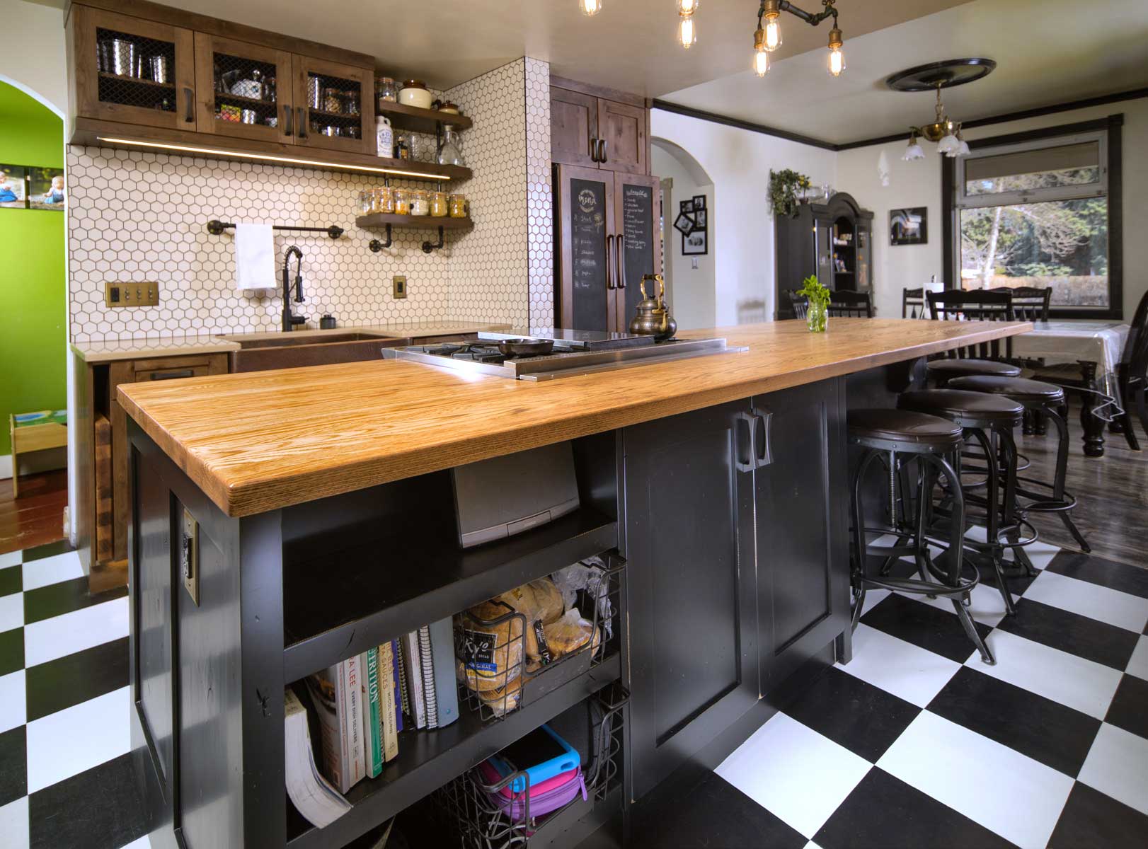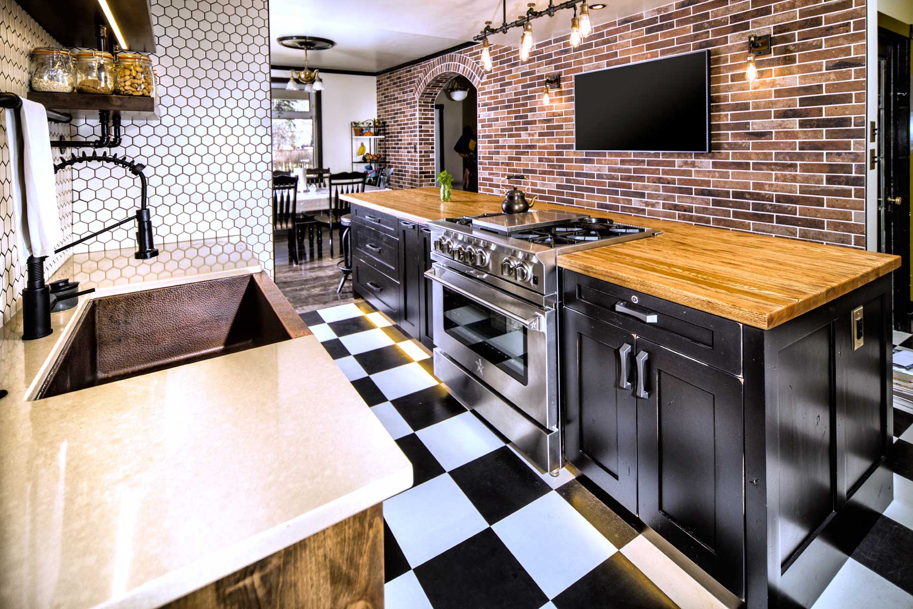 A steampunk-inspired kitchen that combines the best of unique design styles and functionality for this family home.